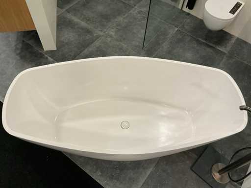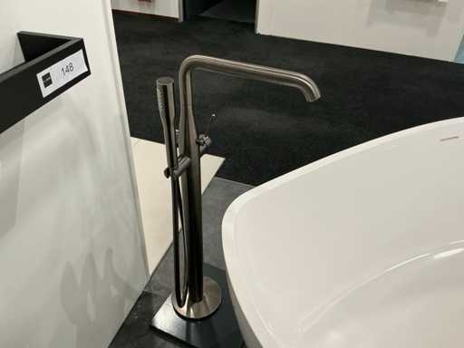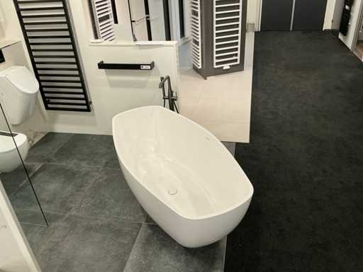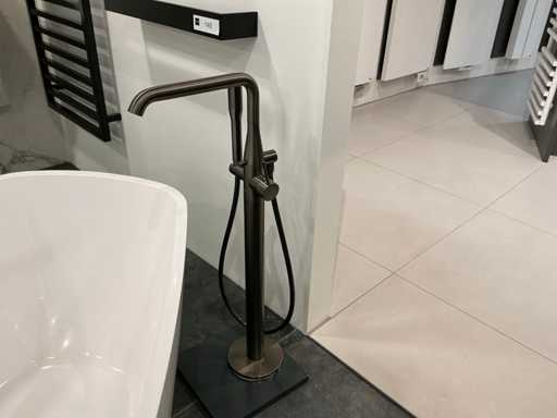 Dotato di rubinetto da bagno indipendente Grohe Freestander senza parte incorporata e portaasciugamani.