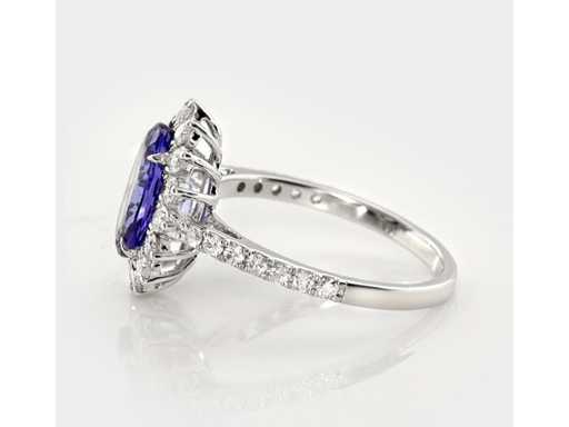 Anello di lusso Tanzanite Naturale Blu Viola 2,94 carati in oro bianco 14k 2,67 gr con una tanzanite ovale blu-viola naturale di 2,34 carati e 30 diamanti naturali rotondi brillanti da 0,60 carati. La tanzanite è una gemma estremamente rara, trovata in un solo luogo al mondo, la Tanzania. Poiché questa singola fonte dovrebbe esaurirsi tra 15 e 20 anni, per questo motivo la tanzanite è anche una gemma perfetta per investire. Certificato da IGI, uno dei principali istituti indipendenti al mondo per la certificazione e la valutazione delle pietre preziose. Per maggiori informazioni, vedi il certificato. I gioielli, in realtà, sono meglio delle foto. Prezzo stimato del rivenditore: € 9.750.-