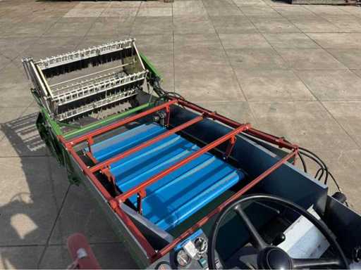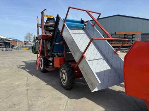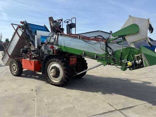 La macchina è costruita su un telaio di trattore usato; equipaggiata principalmente con componenti nuovi; come nastri di ascensore ecc.; la macchina esegue tutte le funzioni; controllabile dalla parte superiore della macchina; inclusi contenitori, contenitori; Si prega di notare che la macchina deve essere trasportata su un camion a carica bassa