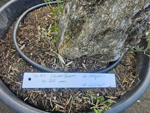 Porta un tocco mediterraneo nel tuo giardino con questo impressionante ulivo, di circa 100 anni. Con un'altezza maestosa di 260 cm e un tronco caratteristico e contorto, questo esemplare è un pezzo davvero unico e un punto di riferimento per qualsiasi area all'aperto di alto livello. La fitta corona con le sue foglie verde-argentate e la crescita robusta sono la prova di decenni di cura e vitalità. Un simbolo senza tempo di resistenza e gioia mediterranea di vivere.