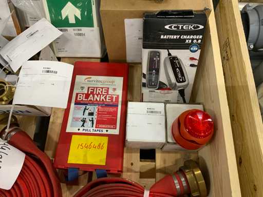comprensivo di: 1 coperta antincendio, segnali di avvertimento di emergenza, 1 gocciolatore Ctec, 1 scatola di allarme antincendio, tipo: FS 12, giunti in ottone, 2 lampade di illuminazione di allarme