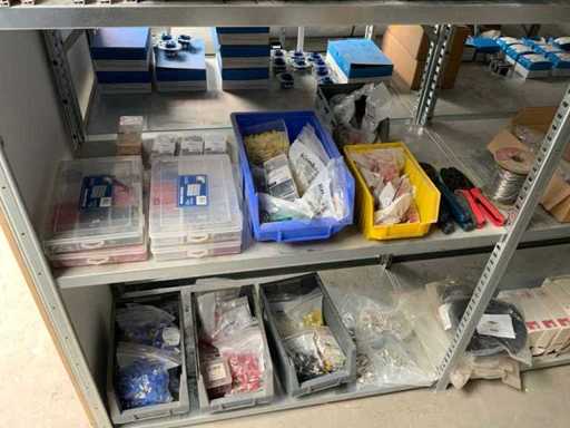 Tra cui: barre collettrici Hager, terminali di connessione, fusibili fusibili, fusibili a lama, cavi di collegamento coassiale Hirschmann, campanelli Honeywell Home serie 3, 5 pannelli di distribuzione, interruttori Eaton, 1 router TP-link, ansole per cavi, pinze per crimpare. Diviso in 23 compartimenti