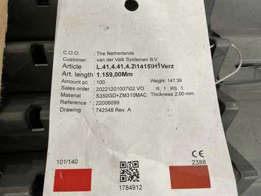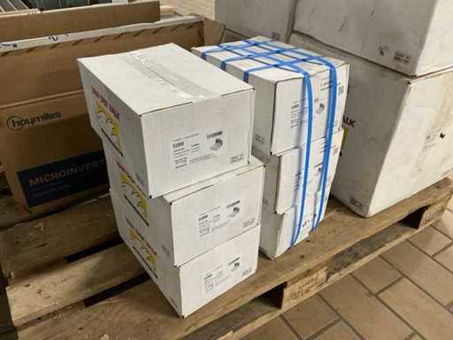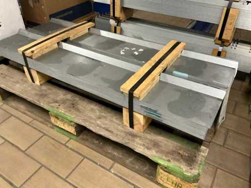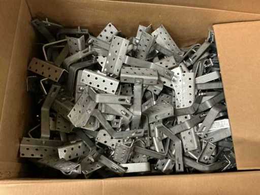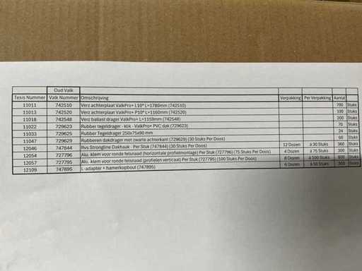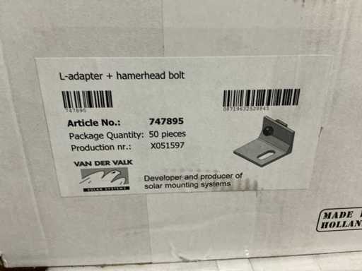 Composto da 5 pallet di materiale di montaggio tra cui: piastre posteriori, supporti per piastrelle in gomma, gancio per il tetto in acciaio inox, morsetti e adattatore a L + testa del martello