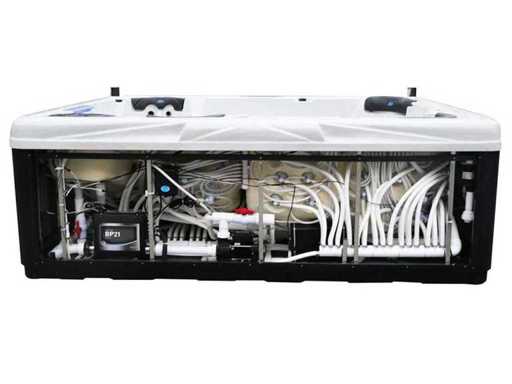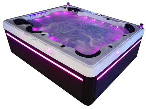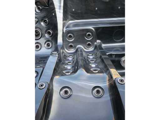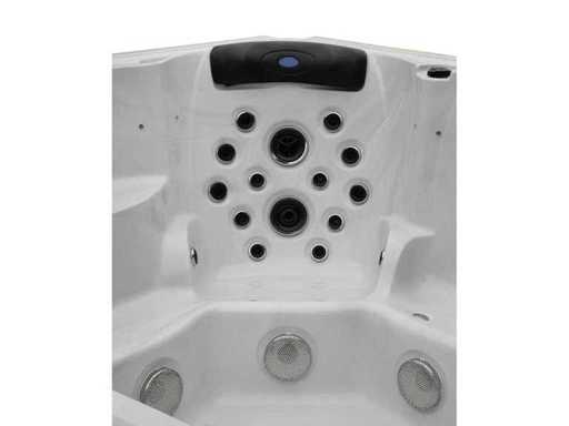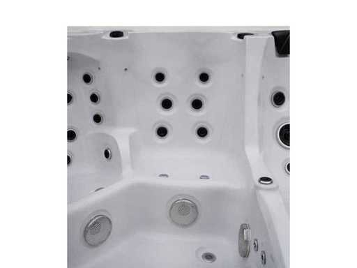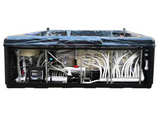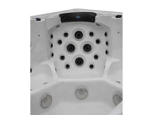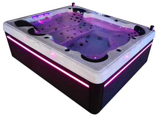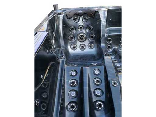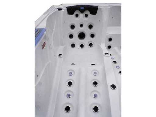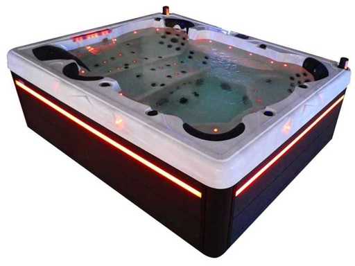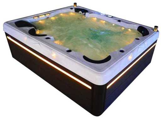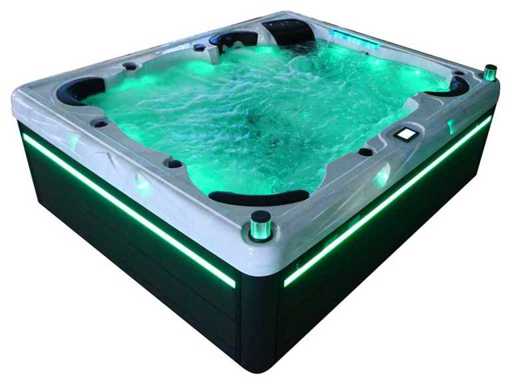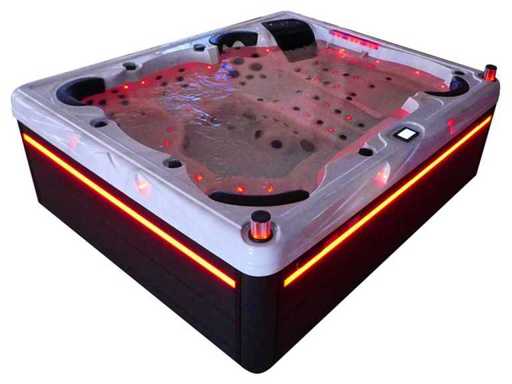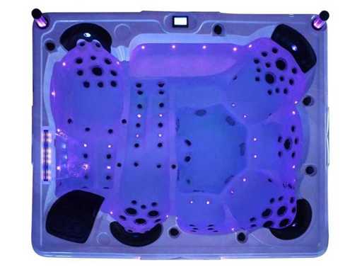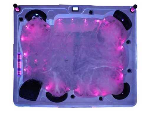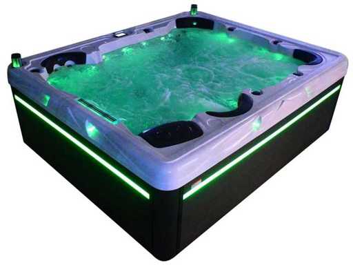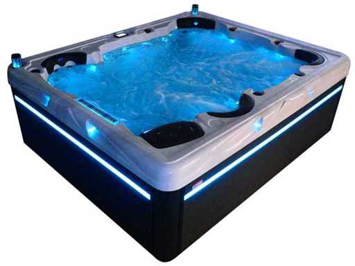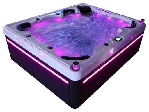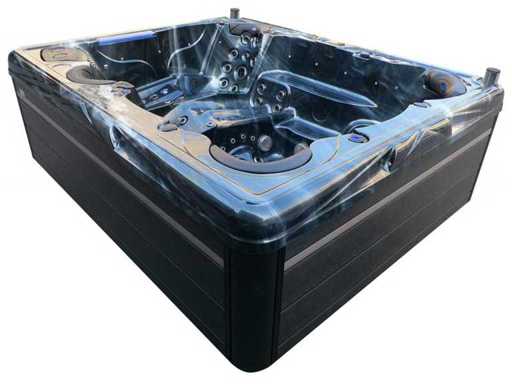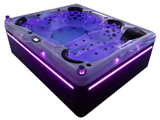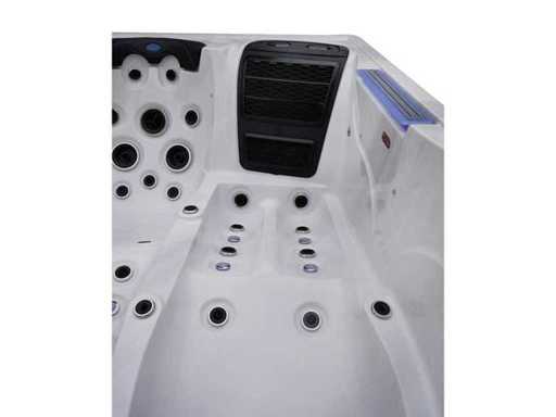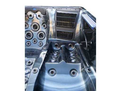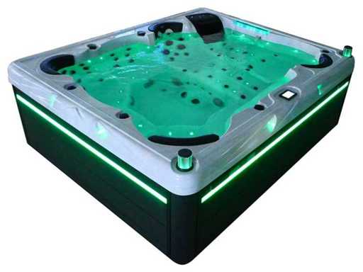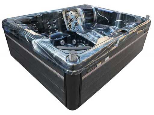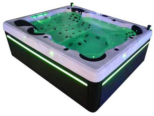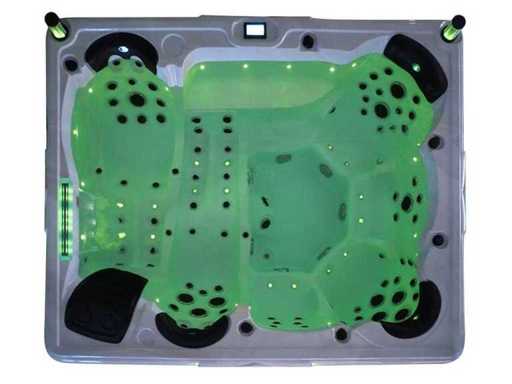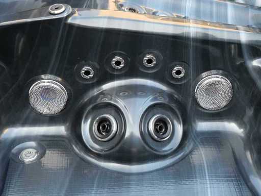 Controlla Balboa (computer Balboa BP21 + ultimo display Spa touch 3), riscaldatore Balboa (3000 watt), wifi Balboa (per il controllo remoto con telefono/tablet), audio Bluetooth Balboa, 2 altoparlanti a pop-up con illuminazione LED, subwoofer, involucro in plastica senza manutenzione con illuminazione LED tutto intorno ai pannelli laterali, 4 pompe massaggi (3* 3hp e pompa aria da 1* 400 watt), pompa di circolazione 24h (0,5hp), 4 posti e 2 cuccette (4 posti con cuscineta per la testa), Copertura spessa (nera) includeva, un totale di 117 getti in acciaio inossidabile, di cui 16 con illuminazione LED (varie dimensioni e diversi idrogetti), getti extra per massaggi al collo e ai piedi, protezione antigelo, sistema di disinfezione dall'ozono da 50mg/h, vari LED (43 pezzi) che illuminano lungo il bordo dell'acqua, alimentatore di aroma, una grande cascata con illuminazione LED, varie manopole di controllo per controllare l'alimentazione e la distribuzione ai getti. 2x filtro di superficie e pulizia, isolamento in schiuma extra spesso della vasca (minimo 45mm) + isolamento extra sulle pareti esterne con alluminio + isolamento di spessore 5mm sul bdem chiuso in PVC, drenaggio dell'acqua, inclusi i gradini, telaio in alluminio (molto resistente e resistente alla ruggine), questa spa è piena di tutte le possibili opzioni ordinabili, questo è un prodotto nuovo nel packaging. La spa può essere collegata sia a 220 volt che a 380 volt (35a o 49a).