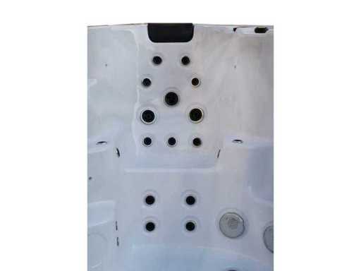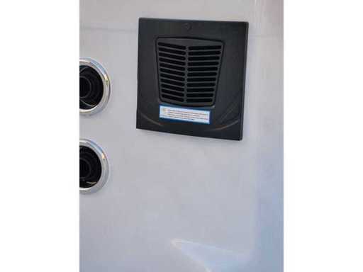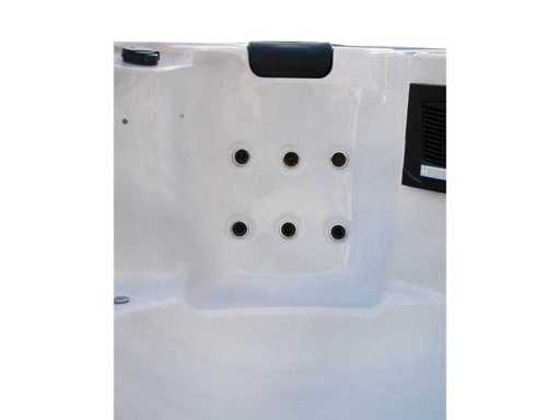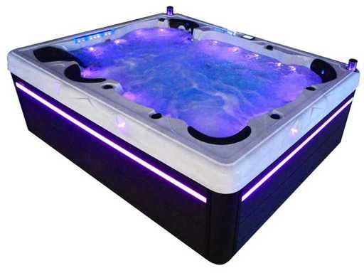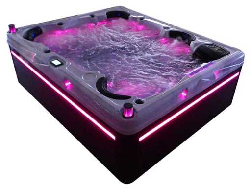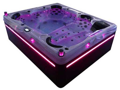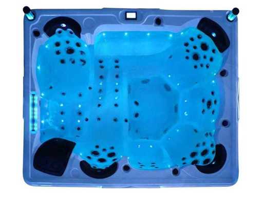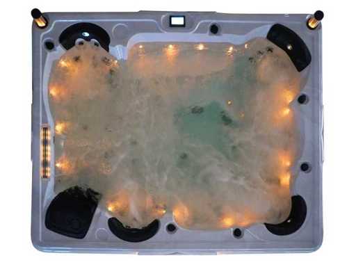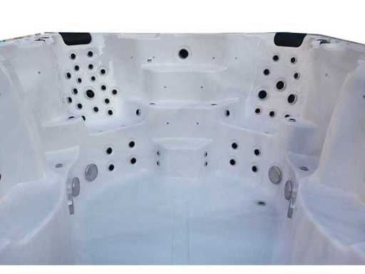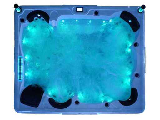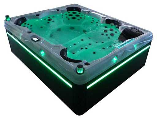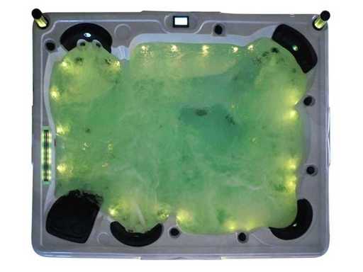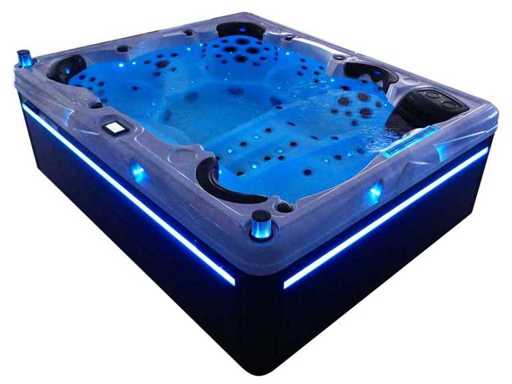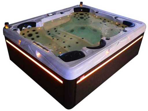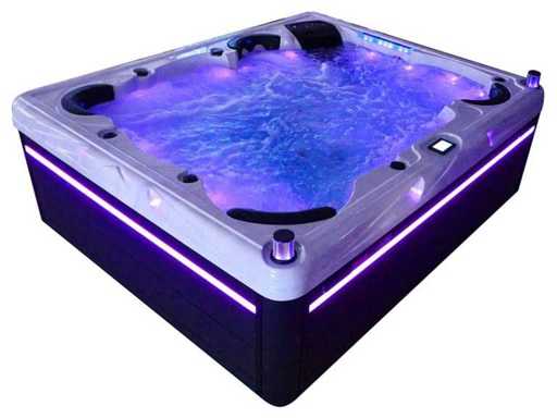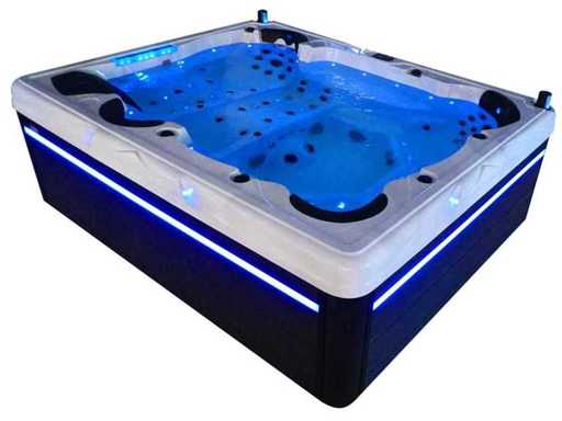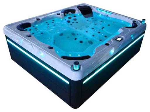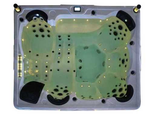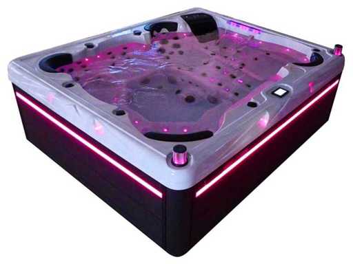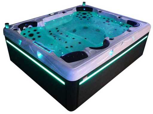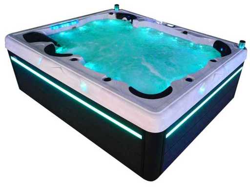 Controlla Balboa (computer Balboa BP21 + ultimo display Spa touch 3), riscaldatore Balboa (3000 watt), wifi Balboa (per il controllo remoto con telefono/tablet), audio Bluetooth Balboa, 2 altoparlanti a scomparsa con illuminazione LED, subwoofer, involucro in plastica senza manutenzione con illuminazione LED tutto intorno ai pannelli laterali, 4 pompe massaggi (3* 3hp e pompa aria da 1* 400 watt), pompa di circolazione 24h (0,5hp), 11 posti (6 posti con cuscineta per la testa), copertura spessa (nera) inclusa, un totale di 102 getti in acciaio inossidabile, inclusi 12 getti d'aria con illuminazione LED (varie dimensioni e diversi idrogetti), getti turbo da nuoto 2* 7'', getti extra massaggi per collo e piedi, protezione antigelo, sistema di disinfezione dall'ozono da 50mg/h, vari LED (31 pezzi) di illuminazione lungo il bordo dell'acqua, alimentatore di aroma, 2x grande cascata con illuminazione LED, vari manopole di controllo per controllare la forza e la distribuzione ai getti, 2x filtro di superficie e pulizia, isolamento in schiuma extra spesso della vasca (minimo 45mm) + isolamento extra sulle pareti esterne con lamina + isolamento di spessore 5mm sul bdem chiuso in PVC, drenaggio dell'acqua, inclusa scala (nera), telaio in alluminio (molto resistente e resistente alla ruggine); questa spa è piena di tutte le opzioni ordinabili, Questo è un nuovo prodotto nel packaging. La spa può essere collegata sia a 220 volt che a 380 volt (35A o 49A).