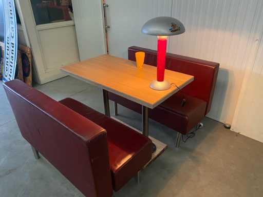 Servizio da cena del ristorante McDonald's anni '70 dell'ultimo secolo, completo di tavolo e lampada da tavolo