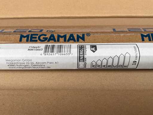 Questo tubo fluorescente LED Megaman è una soluzione di illuminazione con una lunghezza di 146,3 cm, progettata come una lampada LED T5. La lampada ha una potenza di 19 watt e funziona in un intervallo di tensione compreso tra 105 e 125 volt. Con un'emissione luminosa di 2900 lumen, questo tubo LED offre una luce brillante nel colore bianco freddo. Il tubo ha un diametro di 1,8 cm ed è dotato di un attacco T5, adatto per apparecchi progettati per lampade T5.