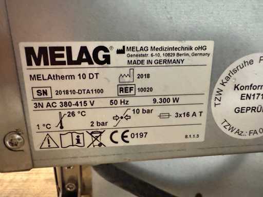 MELAG MELAtherm 10 DT, con cestello, schermo crepato, venduto con schermo sostitutivo, 3838 cariche, 2018, per favore ispezione