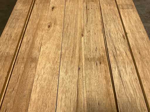 Queste doghe Fraké (B-choice) hanno dimensioni di 395 x 15,5 x 2,3 cm. Il legno Fraké viene utilizzato in vari progetti di costruzione e giardino. Le doghe possono essere utilizzate sia all'interno che all'esterno per rivestimenti di facciate, recinzioni o altre finiture in legno.