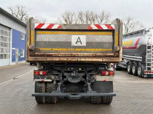 Robusto camion ribaltabile Mercedes-Benz Arocs 3345, in configurazione 6x6 e dotato di carrozzeria Bordmatik. Questo camion è progettato per lavori pesanti come movimenti terra, edilizia e infrastrutture, tra gli altri.