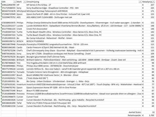 Si tratta di un lotto di prodotti resi a marchio A da un grande rivenditore online. Il lotto è composto da varie categorie di prodotti. Numero di pezzi: 33. Valore al dettaglio: €3700,- Non controllato: funzionamento sconosciuto (mix di funzionante, incompleto, danneggiato, utilizzabile per le parti). Vieni il giorno della visione per farti un'idea del motivo del ritorno. Vedi le foto per l'elenco dei contenuti.