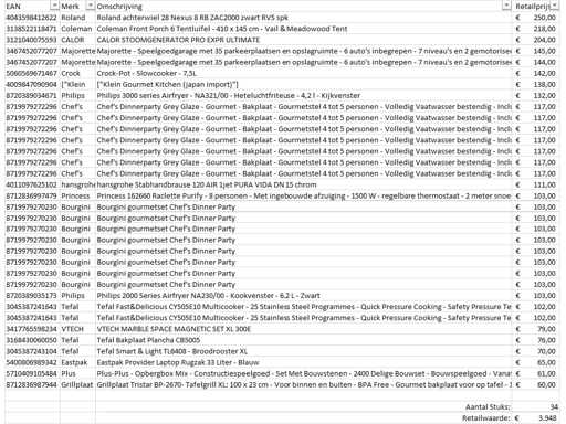 Si tratta di un lotto di prodotti resi a marchio A da un grande rivenditore online. Il lotto è composto da varie categorie di prodotti. Numero di pezzi: 34. Valore al dettaglio: €3948,- Non controllato: operazione sconosciuta (mix di