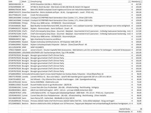 Si tratta di un lotto di prodotti resi a marchio A da un grande rivenditore online. Il lotto è composto da varie categorie di prodotti. Numero di pezzi: 38. Valore al dettaglio: €4421,- Non controllato: funzionamento sconosciuto (mix di
