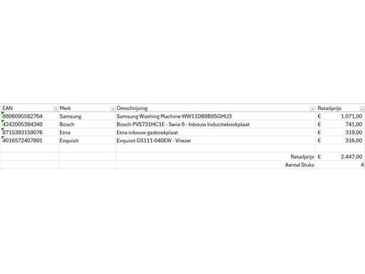 Si tratta di un lotto di prodotti resi a marchio A da un grande rivenditore online. Il lotto è composto da varie categorie di prodotti. Numero di pezzi: 4. Valore al dettaglio: €2447,- Non controllato: funzionamento sconosciuto (mix di