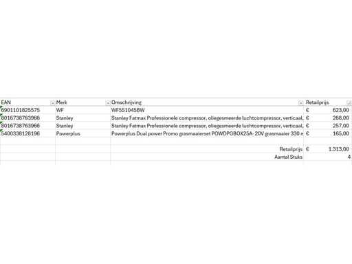 Si tratta di un lotto di prodotti resi a marchio A da un grande rivenditore online. Il lotto è composto da varie categorie di prodotti. Numero di pezzi: 4. Valore al dettaglio: €1313,- Non controllato: operazione sconosciuta (mix di