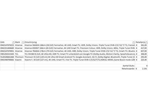 Merci di restituzione dei Pallet Televisions - 6 articoli