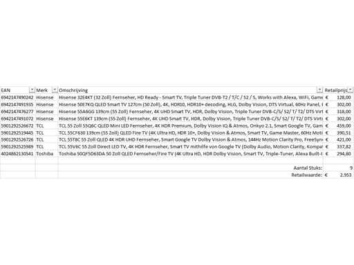 Merci di restituzione dei Pallet Televisions - 9 articoli