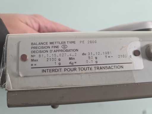 Bilancia da laboratorio METTLER Tipo PE2000 Max 2100g Min 50g e=1g T=-2100g