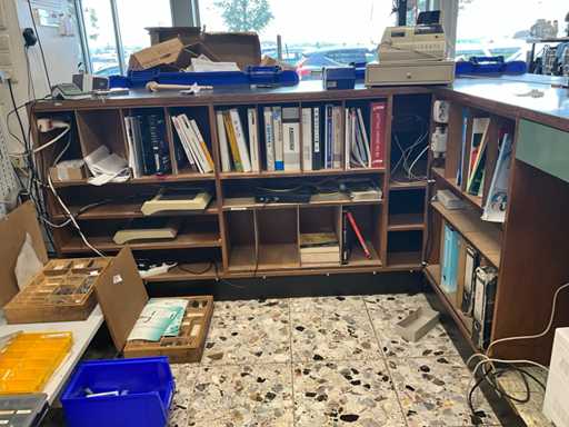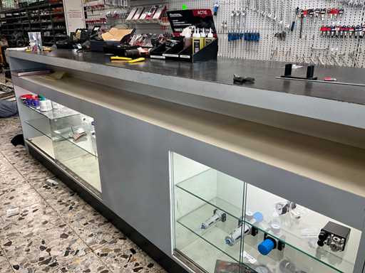 Allestimento ad angolo. NOTA BENE: Il ritiro di questo lotto avverrà separatamente dal giorno o dai giorni di ritiro programmati in quanto sarà in uso fino ai giorni di ritiro inclusi.