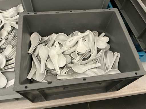 Un grande lotto di ciotole, bowl, piatti, cucchiai di varie dimensioni, forme e colori. Niente dolci.