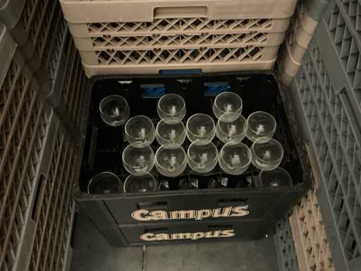 Un sacco di 230 bicchieri da vino. Con il vassoio.