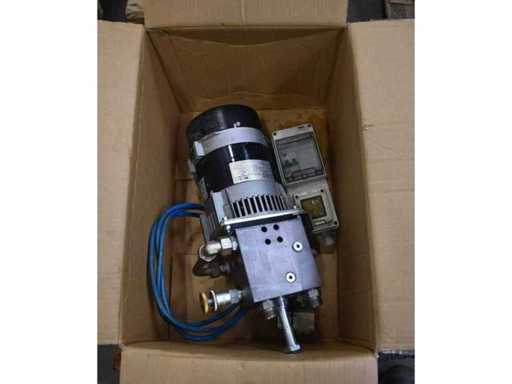 Numero interno: Pallet 17, motore elettrico con pompa (LxL 0,53 x 0,26 m, peso 19,5 kg), piccolo scatola fusibili, contenuto e condizioni vedi foto, inclusi il pallet (LxL 0,80 x 0,60 x 0,26 m), non impilabile,