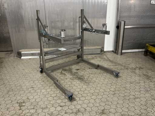Dotato di 2 ruote girevoli e 4 cilindri di sollevamento