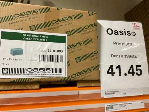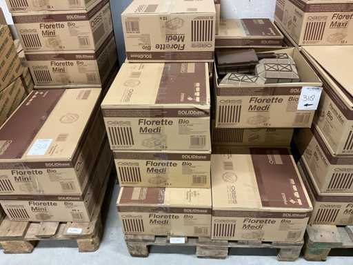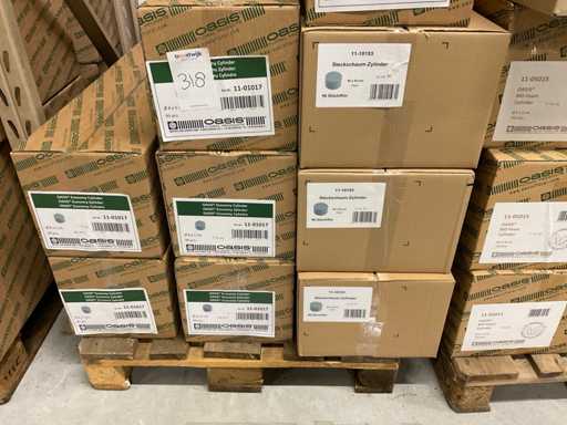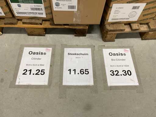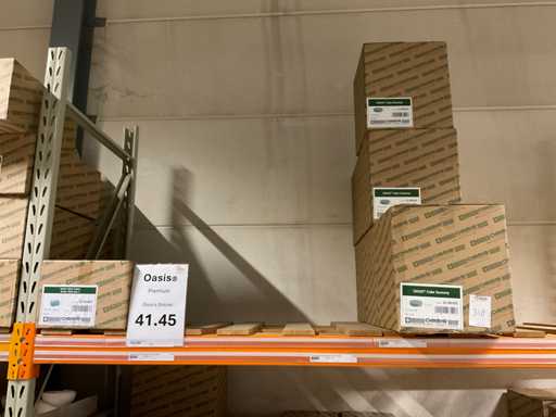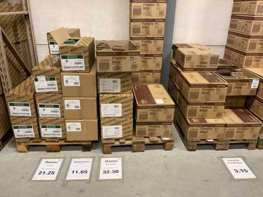 Sezione contenuti scaffale e 3 pallet con vari modelli e dimensioni oasis