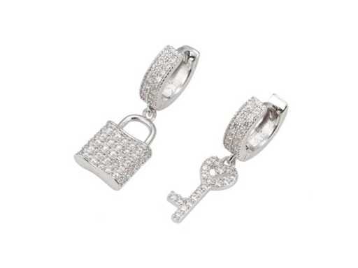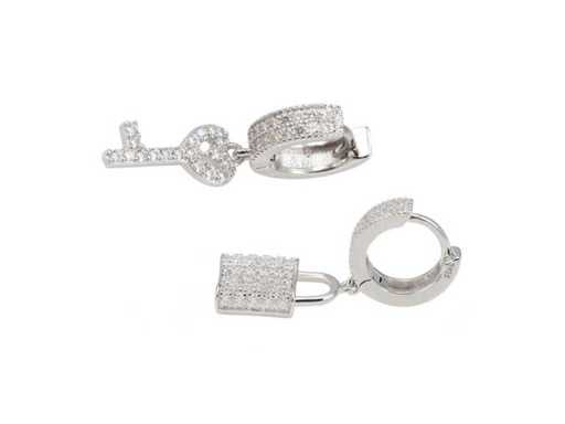 dettagli Orecchini color argento con chiusura e chiavi incastonate