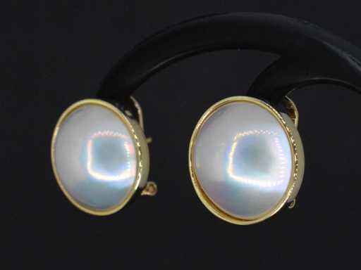 vesciche Perla: Perle per vesciche naturali; Colore: Bianco; Gioiello: Orecchini; Peso: 10,3 once; Dimensioni/lunghezza: Diametro: 8 mm; Materiale: oro 14k (585); Condizione: D'epoca; Imballaggio: scatola di gioielli di lusso; Spiegazione: La qualità è stata presa dal rapporto relativo all'articolo. La valutazione è una valutazione di un commerciante certificato di diamanti, basata sui prezzi al consumatore; Prezzo al consumo: €8.000