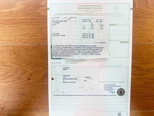 -> acquirenti commerciali provenienti dall'Unione Europea (UE) e da paesi non UE (paesi terzi) sono obbligati a pagare un acconto a Troostwijk Germania sull'intero acquisto. Questo deposito viene calcolato sulla base dell'aliquota IVA applicabile nella Repubblica Federale di Germania. Dopo la conferma che il lotto acquistato è uscito dall'UE, il deposito sarà restituito all'acquirente: