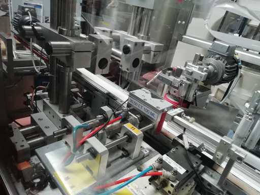 Macchina con stazione di etichettatura verticale (sotto la fiala)
