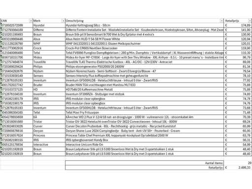 Si tratta di un lotto di prodotti restituiti di marca A da un grande rivenditore online. Il lotto è composto da varie categorie di prodotti. Numero di pezzi: 29. Valore al dettaglio: €2486,- Non controllato: operazione sconosciuta (mix di