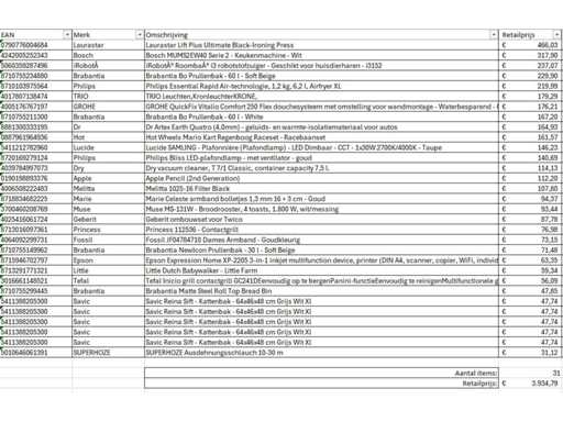 Si tratta di un lotto di prodotti restituiti di marca A da un grande rivenditore online. Il lotto è composto da varie categorie di prodotti. Numero di pezzi: 31. Valore al dettaglio: €3935,- Non verificato: operazione sconosciuta (mix di
