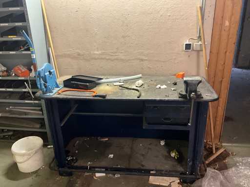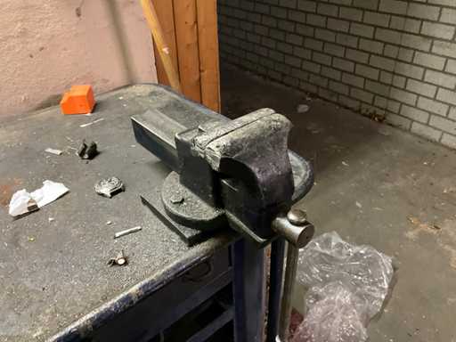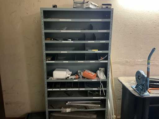 Dotato di morsa, dispositivo di taglio e armadio aperto con contenuto