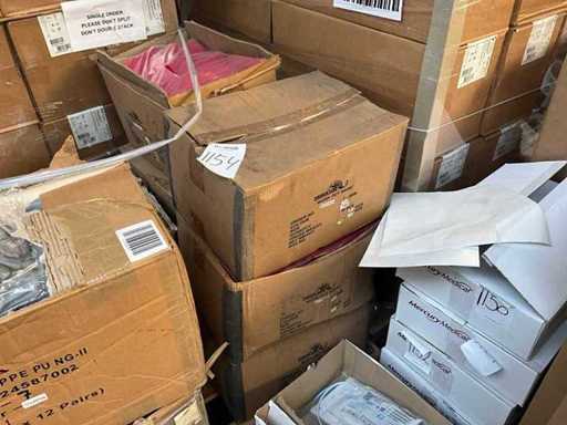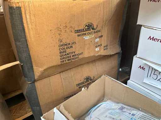 5 scatole di salopette non selezionate per dimensioni, numeri e colore;