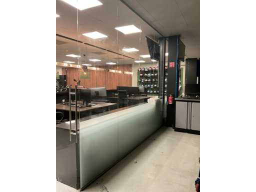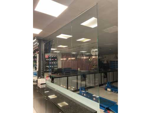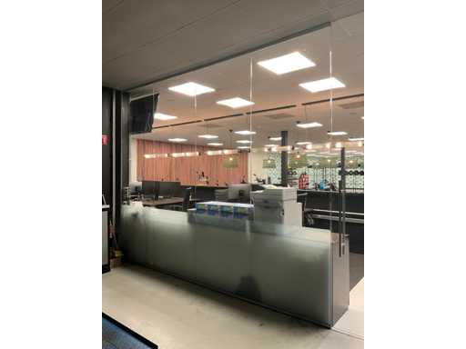 Composto da 8x finestre: 92x (h) 290 cm - 1x porta: 116x (h) 290 cm - 1x porta 118x (h) 290 cm. Spessore vetro: 10mm.