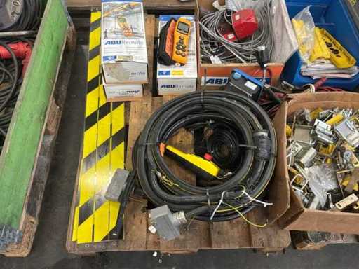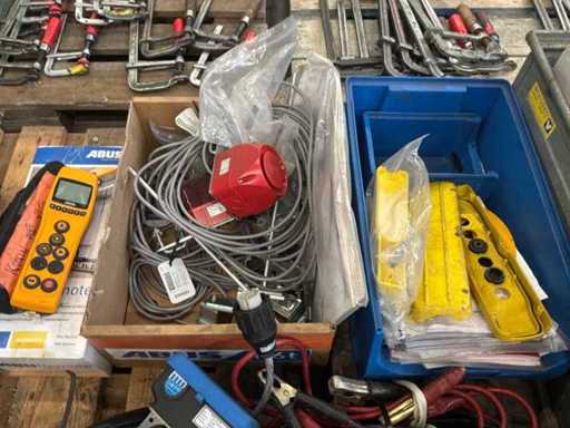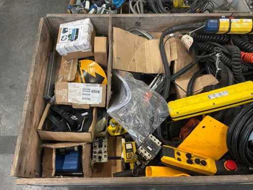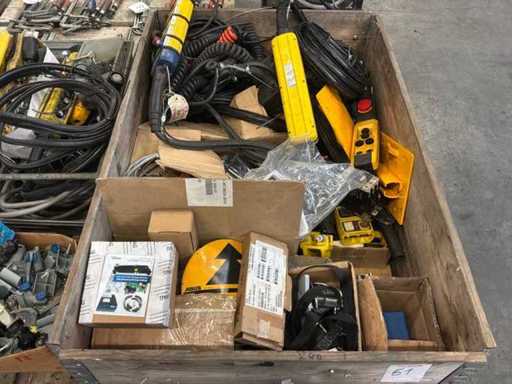 pallet 3X con accessori per gru aeree; telecomandi; sensori;