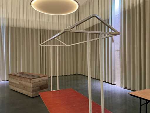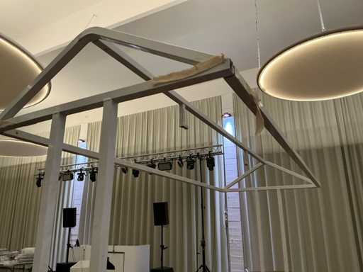 Consisting of 2 tables of 2 meters long and 3 frames. Includes 2 types of awnings for "roof section". Perfect for operation at events.