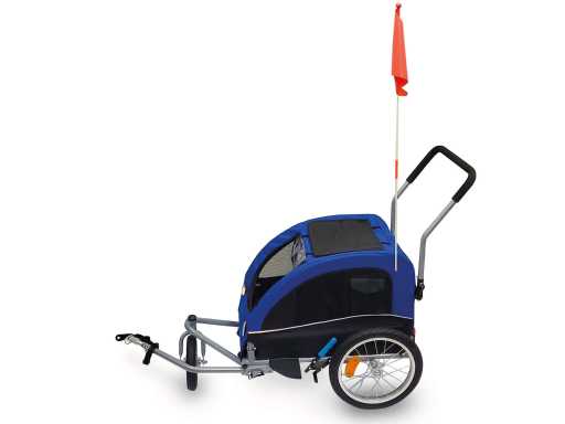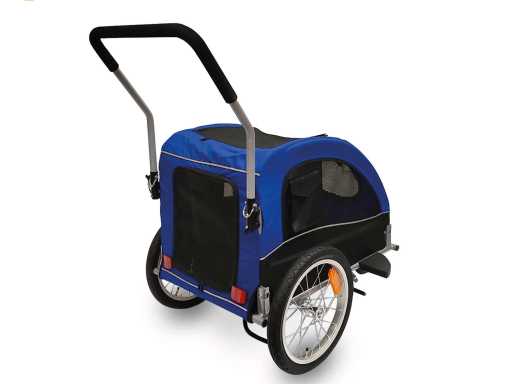 Il passeggino per cani blu 2 in 1 e il rimorchio per biciclette è il compagno ideale per cani e proprietari di cani.