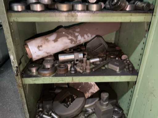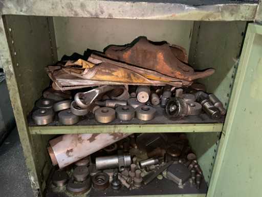 Inclusi 2 nastro trasportatori a rulli di scarico, 1x dimensione 200x54x90cm, 1x dimensione 150x98x71cm, 1x dimensione armadietto materiale 50x40x104cm inclusi i contenuti inclusi vari perforatori e accessori per macchine.