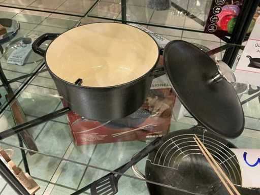 Penzola da cucina, wok e + casseruola ovale in ghisa