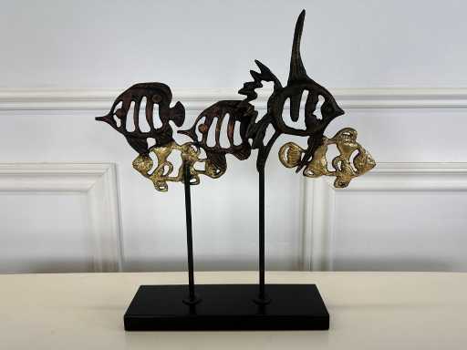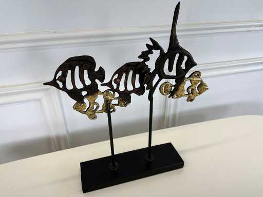 fatto di metallo; dotato di base in legno