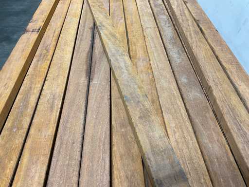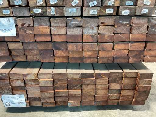 Ringhiere in legno duro Angelim Vermelho, piallate su 4 lati, di dimensioni 250 x 9 x 4,5 cm.