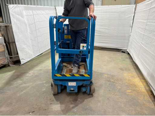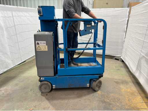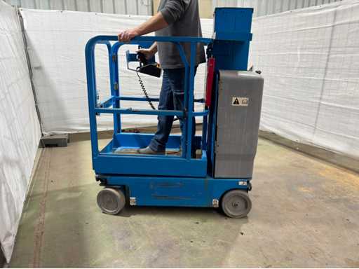 Questa piattaforma aerea è in condizioni di uso ordinato ed è COMPLETAMENTE FUNZIONANTE - Solo 173 ore di orario, quindi poco utilizzata - Ascensore a traliccio compatto e affidabile Genie GRC12, ideale per lavori di manutenzione e installazione all'interno degli edifici - Grazie all'azionamento elettrico, la macchina è silenziosa, pulita e a bassa manutenzione - Il caricabatterie integrato rende la ricarica particolarmente facile: basta collegarla a una presa standard da 230V e la macchina si carica automaticamente - Il GRC12 offre un Altezza di lavoro stabile fino a 5,45 metri e capacità di piattaforma di 227 kg, ideale per una persona con attrezzi - Grazie alla stretta larghezza costruttiva di soli 75 cm, la macchina si adatta senza sforzo alle porte ed è perfetta per l'uso in magazzini, sale di fabbrica o officine