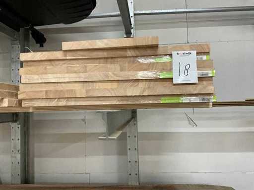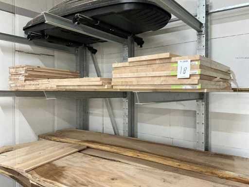 Dimensioni: 18x600x800mm, 6X, 18x400x800mm, 14x e 11x di varie dimensioni. Inclusi lotti di vari materiali legnosi