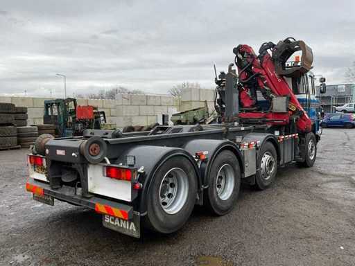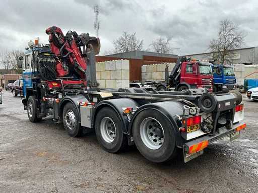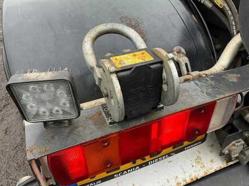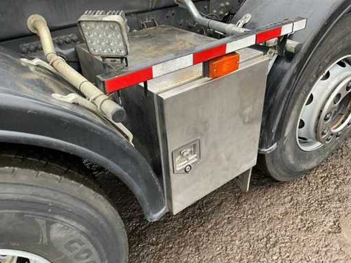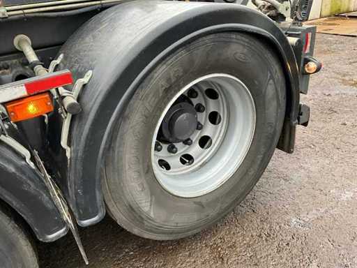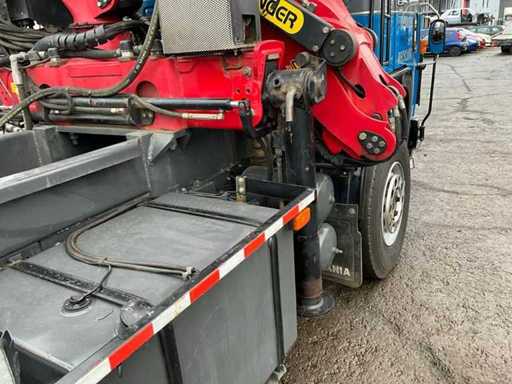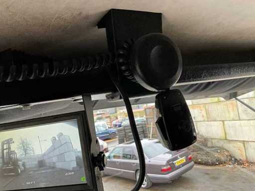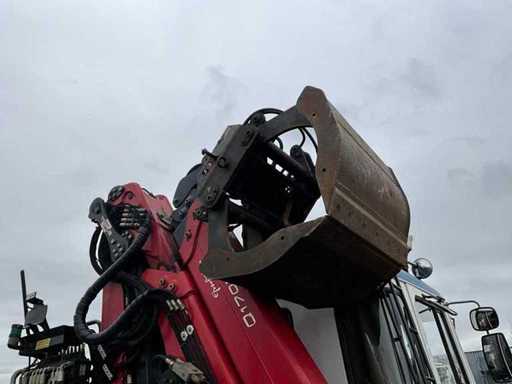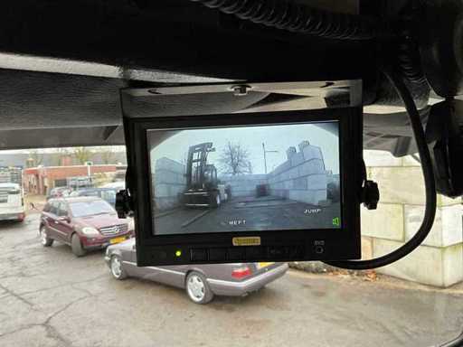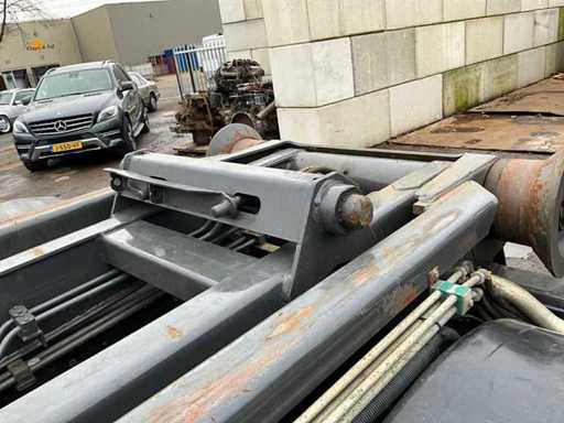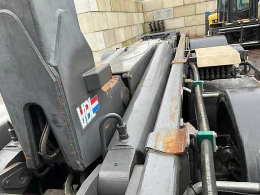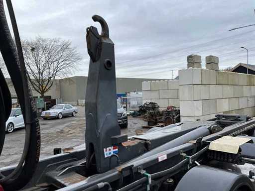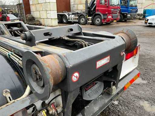 Contagisto analogico, asse sollevante, radio Midland MC27, telecamera posteriore, gru Palfinger Epsilon 0170Z95TR 2009 montata su camion con spremezzore e telecomando, capacità massima 4970kg su 3m, 2 gambe di supporto, sistema VDL Hooklift, bocca di prelievo Ringfeder, Duomatic, 2 spine a 7 pini, 2 connette aria, spina Nato, 2 valvole idrauliche DW
