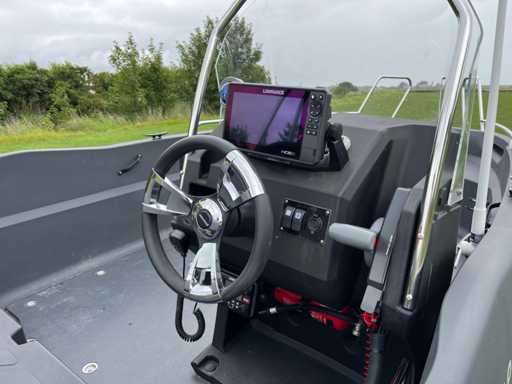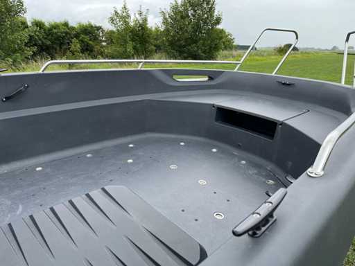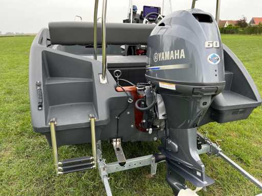 Anno di costruzione 2023. Adatto a 6 persone, sterzo idraulico, barra di navigazione in acciaio inox, ringhiera in acciaio inox, luci di navigazione a LED. Yamaha motore fuoribordo 60 hp con sole 22 ore di funzionamento!