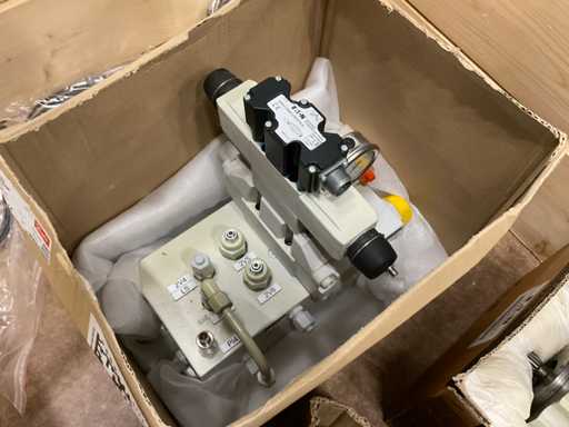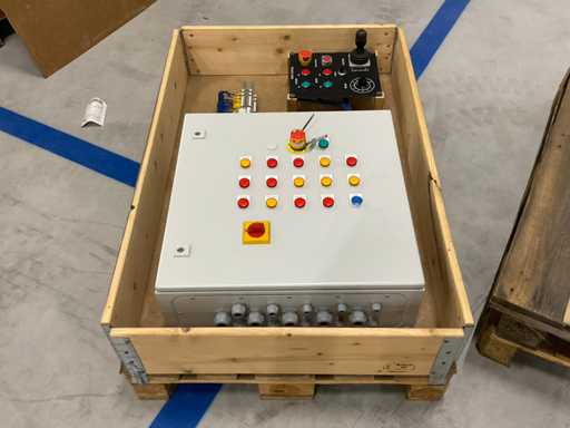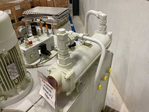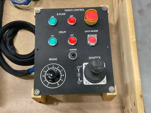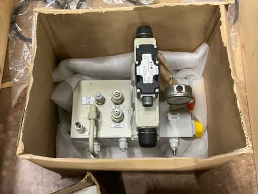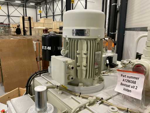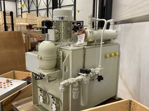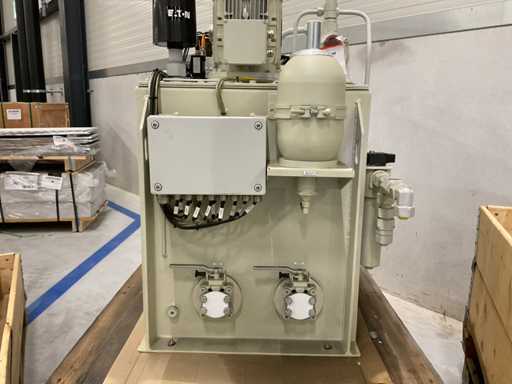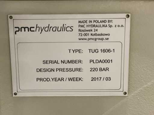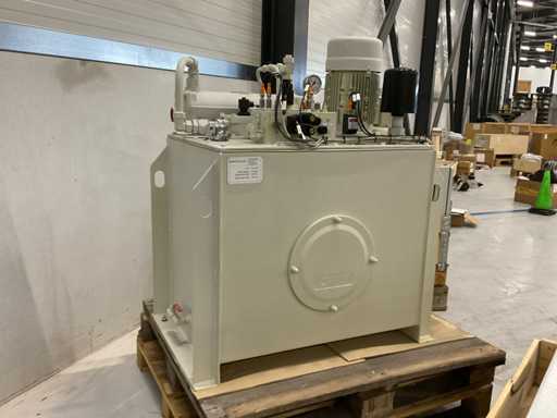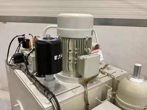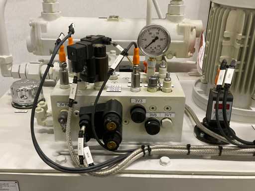 dotato di centralina idraulica; pressione di esercizio 220 bar; potenza 5,5 kW; dimensioni del serbatoio. circa 850x650x720 mm; con (2x) motori idraulici di azionamento "Eaton"; tipo VP2395; (1x) blocco valvole idrauliche; Pannello di controllo e scatola di controllo