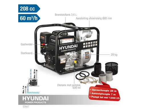 - Pompa per acqua pulita Hyundai 208cc 80mm